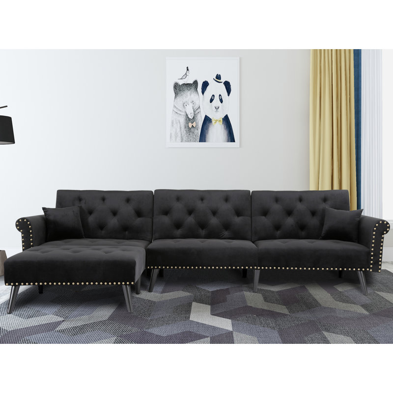 Alsatia 115" Wide Velvet Reversible Sleeper Sofa and Chaise