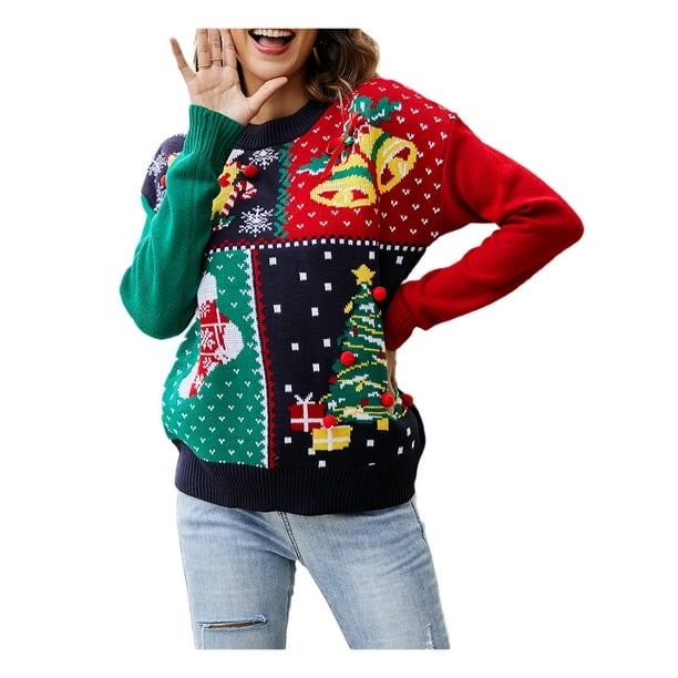 QILINXUAN Women Ugly Christmas Holiday Knit Sweater Pullover Cute Crewneck Reindeer Long Sleeve Pullover Jumper